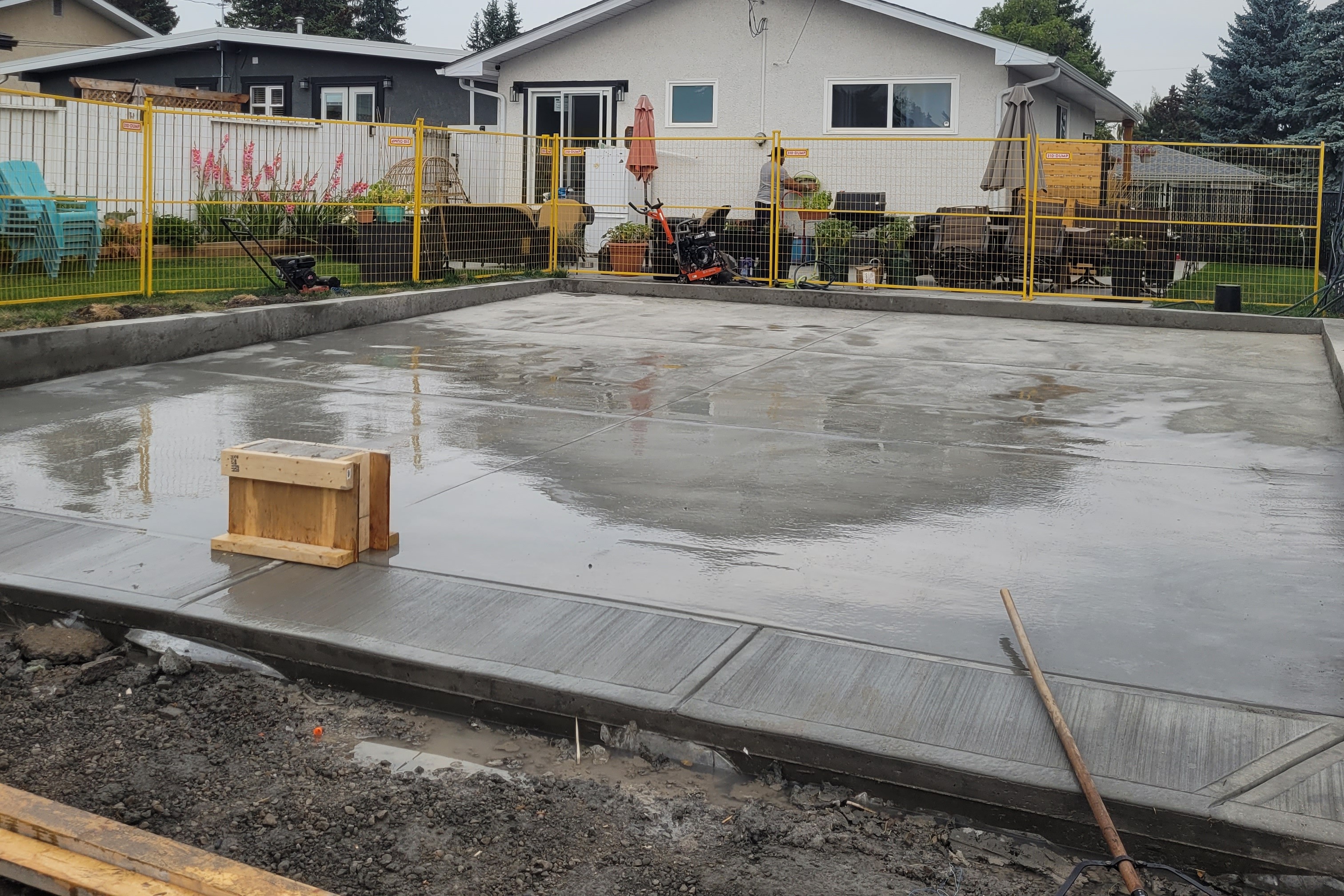 The next step involved constructing a custom-engineered structural concrete pad. Because this was an oversized pad, a detailed design was provided by a structural engineer to ensure strength, durability, and proper load distribution for the new garage.